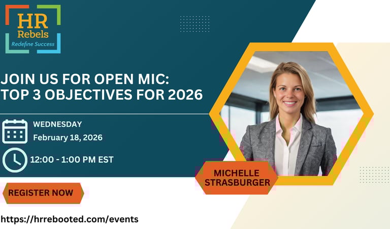 Join HR Rebels founder Michelle Strasburger for an open mic on 2026 objectives. Come ready to share!